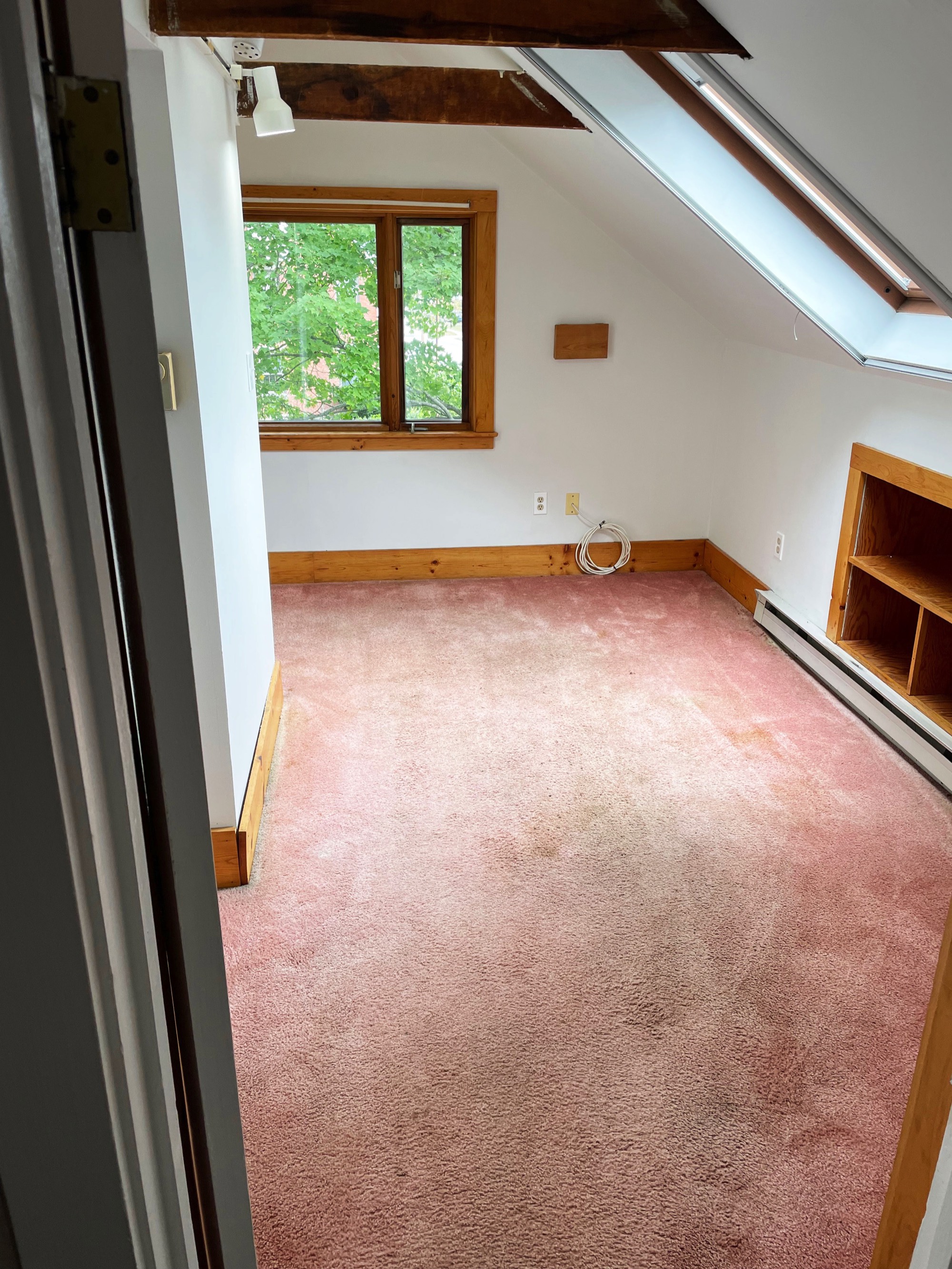 The ceiling height is 9.6' at peak and 4' at the knee wall